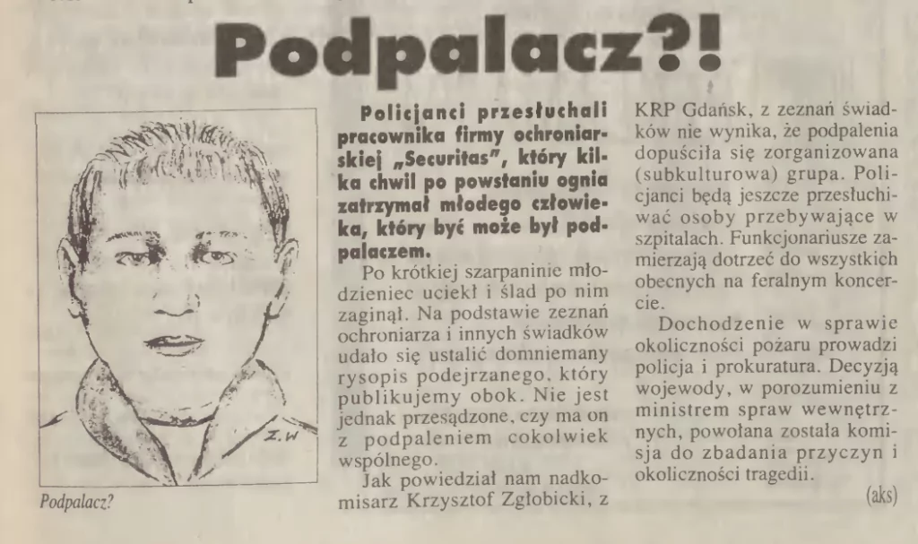 Po tragicznym pożarze w hali Stoczni Gdańskiej, który miał miejsce 24 listopada 1994 roku, przeprowadzono śledztwo mające na celu ustalenie odpowiedzialnych za zdarzenie. W wyniku postępowania sądowego, 8 czerwca 2010 roku Sąd Okręgowy w Gdańsku skazał ówczesnego kierownika hali, Ryszarda Gackiego, na karę 2 lat pozbawienia wolności z warunkowym zawieszeniem wykonania kary na okres próby 4 lat.