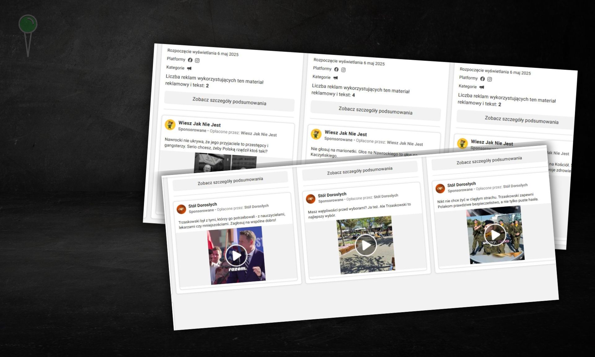 Profil „Wiesz jak nie jest” wydał ponad 208 tys. zł na reklamy polityczne na Facebooku, atakujące Karola Nawrockiego i Sławomira Mentzena. Treści te przedstawiają Nawrockiego jako osobę powiązaną z przestępcami i sugerują, że jego wybór oznaczałby rządy Jarosława Kaczyńskiego.