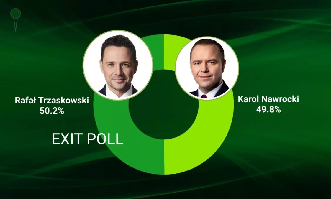 Wstępne wynik exit poll w wyborach prezydenckich 2025 wskazują, że z niewielką przewagą głosów wygrał Rafał Trzaskowski. Obaj kandydaci idą łeb w łeb.
