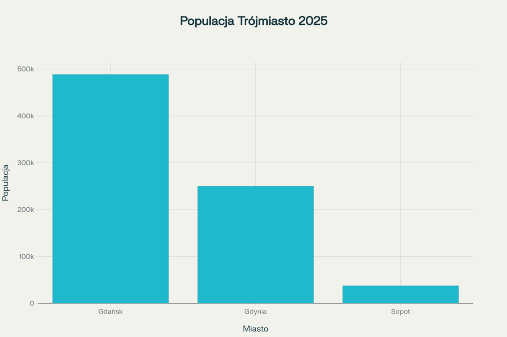 Trójmiasto to serce Pomorza, w którym w 2025 roku łączna liczba mieszkańców trzech głównych miast przekracza 770 tysięcy osób. Gdańsk, jako największy ośrodek, liczy 488 651 mieszkańców, co stanowi około 63% populacji Trójmiasta. Gdynia z wynikiem 250 000 mieszkańców to drugi co do wielkości ośrodek, a Sopot, z 37 627 mieszkańcami, mimo że jest najmniejszy, odnotowuje od kilku lat wyraźny wzrost zaludnienia.