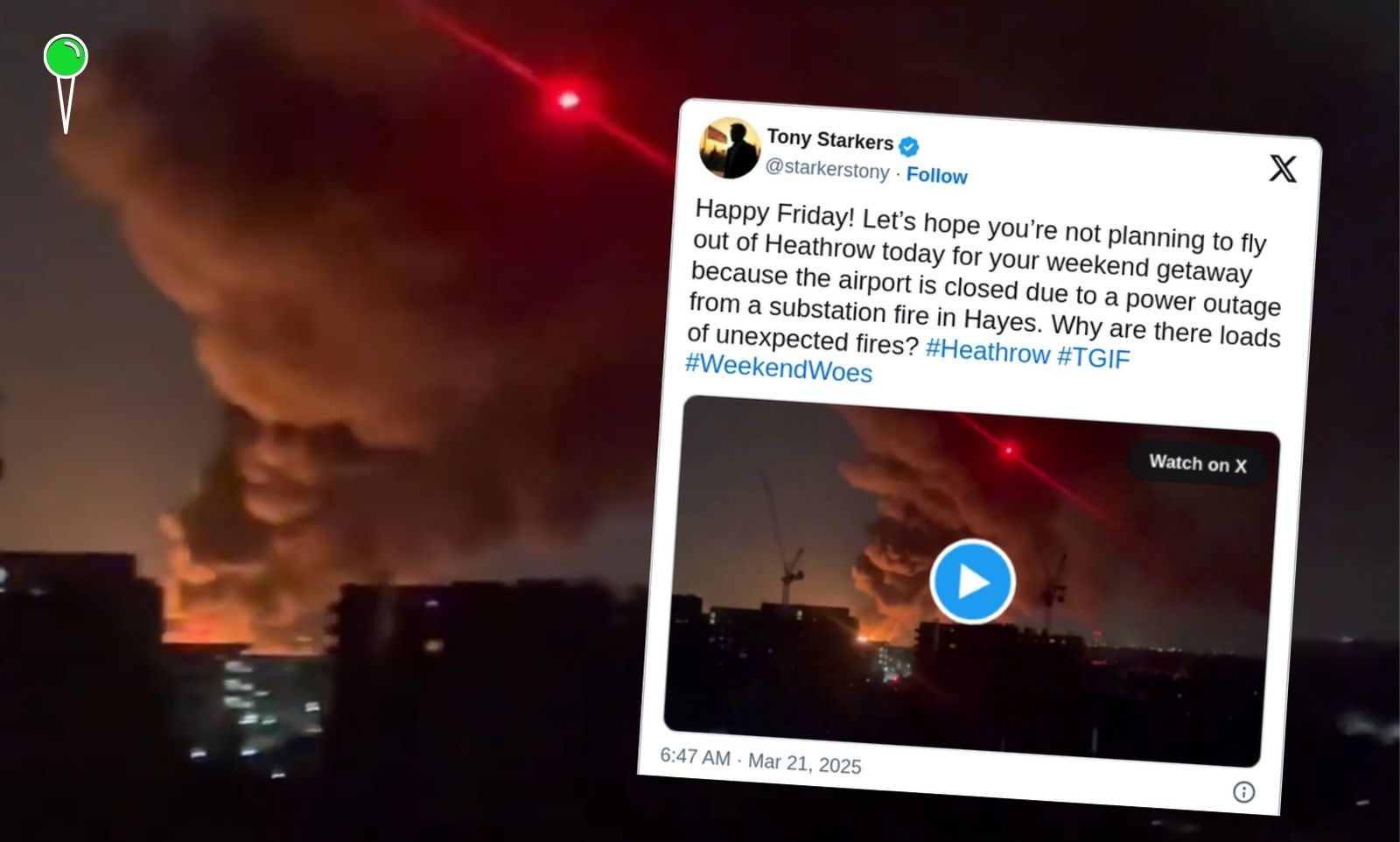 Happy Friday! Let’s hope you’re not planning to fly out of Heathrow today for your weekend getaway because the airport is closed due to a power outage from a substation fire in Hayes. Why are there loads of unexpected fires? #Heathrow #TGIF #WeekendWoes pic.twitter.com/l2MVItuIib