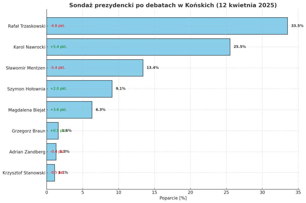 Czytaj więcej: Trzaskowski traci. Nowy sondaż po debatach w Końskich