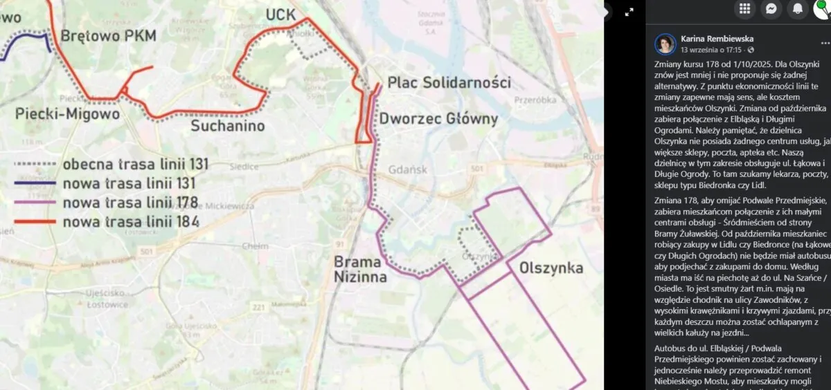 Nasza czytelniczka, Paulina Frask, zwróciła się z dramatycznym apelem o wsparcie w sprawie planowanej likwidacji bezpośredniego połączenia autobusu 178 w gdańskiej Olszynce. Decyzja Zarządu Transportu Miejskiego uderzy przede wszystkim w dzieci dojeżdżające codziennie do szkoły oraz w seniorów i osoby niepełnosprawne, które dzięki tej linii mogły dotrzeć do rynku, placówek medycznych i punktów usługowych.