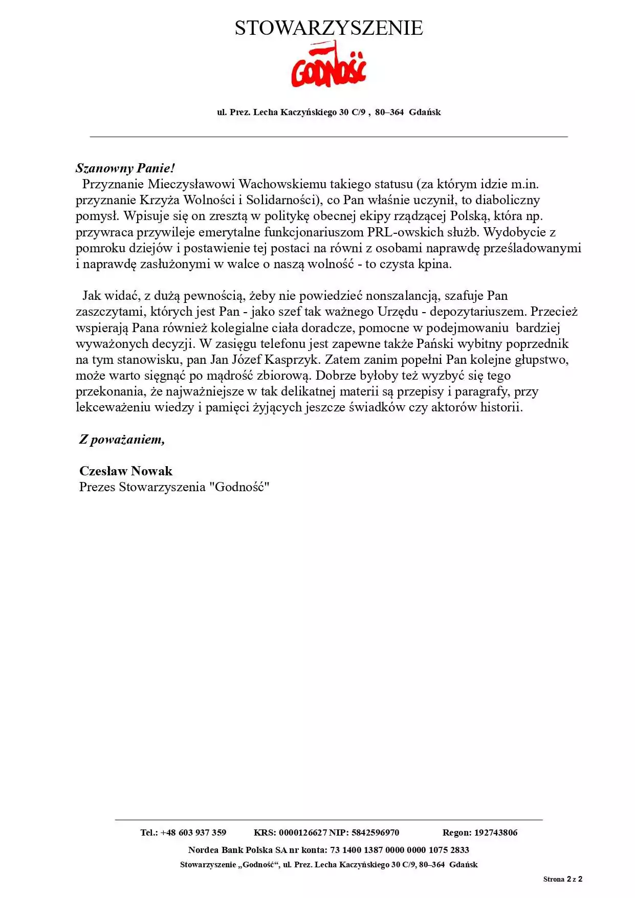 Decyzja o przyznaniu statusu Wachowskiemu jest postrzegana jako część szerszej polityki, która zdaniem krytyków rewizjonistycznie traktuje historię opozycji antykomunistycznej. Zdaniem Czesława Nowaka, prezesa Stowarzyszenia “Godność”, przyznanie takiego statusu Wachowskiemu to “czysta kpina” wobec prawdziwych bohaterów walki o wolność.