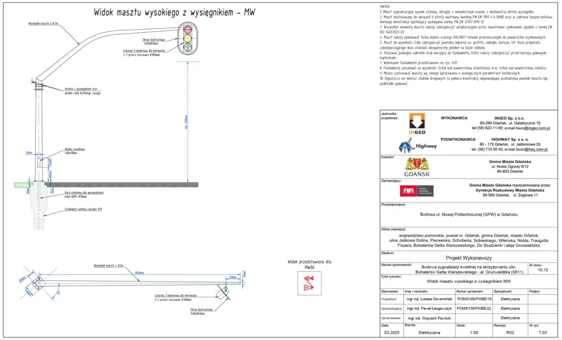Z dokumentacji projektowej, do której dotarł portal wbijamszpile.pl jasno wynika, że na al. Grunwaldzkiej, na odcinku pomiędzy ulicami Do Studzienki a Bohaterów Getta Warszawskiego pojawią się światła zarówno dla pieszych, jak i samochodów.