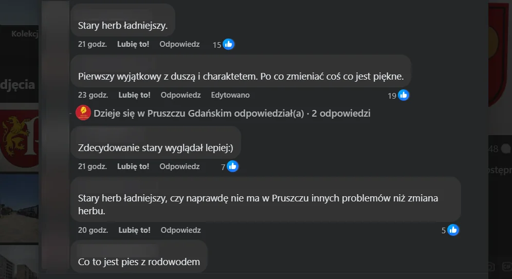 Gorącej dyskusja w mediach społecznościowych mieszkańców Pruszcza Gdańskiego po decyzji władz miejskich o zmianie herbu. Do tej pory symbolem miasta był wystylizowany lew, który teraz według oburzonej opinii publicznej został zastąpiony przez uproszczony gryf, ale bez skrzydeł. Spór dotyczy zarówno kwestii estetycznych, jak i znaczeniowych – wielu mieszkańców twierdzi, że nowy symbol nie oddaje historii i tożsamości miasta.
