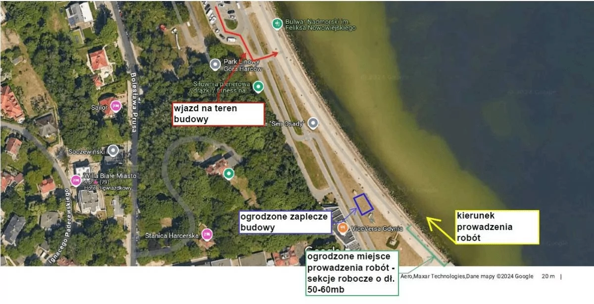 Plan sytuacyjny prac remontowych na bulwarze Nadmorskim w Gdyni (materiały prasowe Urzędu Morskiego w Gdyni)