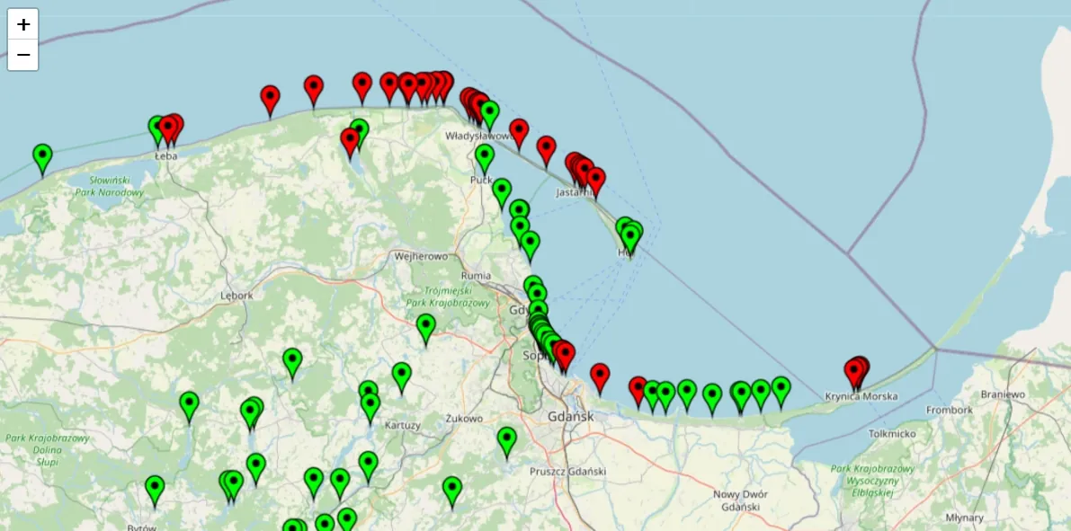 Władze sanitarne alarmują: obecność sinic oznacza absolutny zakaz kąpieli. Mimo upałów i wakacyjnego szczytu nie wolno wchodzić do wody w Łebie, Jastarni, Juracie, Helu, Brzeźnie, Stogach, na Wyspie Sobieszewskiej i w Krynicy Morskiej. Dotyczy to również kąpielisk w Gdańsku – tam zamknięte są m.in. plaże Dom Zdrojowy, Brzeźno Hallera, Molo i Sobieszewo.