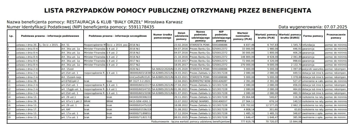 Warto jednak dodać, że firma mamy Kamila Karwasza otrzymała w ostatnich latach aż 780 tys. zł pomocy publicznej.