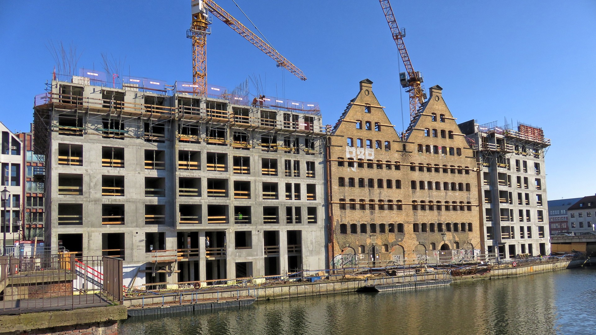 Historyczne spichlerze Groddecka, zostaną w pełni zintegrowane z nowym kompleksem hotelowym. W ramach inwestycji powstanie hotel Renaissance z sieci Marriott – z basenem, strefą spa, restauracjami oraz centrum konferencyjnym. Nowe skrzydła po bokach zabytkowych spichlerzy są już wzniesione – ich surowa konstrukcja zwiastuje skalę przedsięwzięcia.