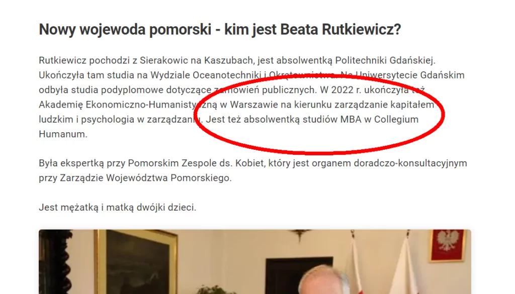 Do skandalicznych ustaleń dotarło wbijamszpile.pl. Otóż dyplomem MBA uczelni, która owiana jest gigantycznym skandalem – Collegium Humanum ma się posługiwać, Beata Rutkiewicz – wojewoda pomorski z ramienia Platformy Obywatelskiej.